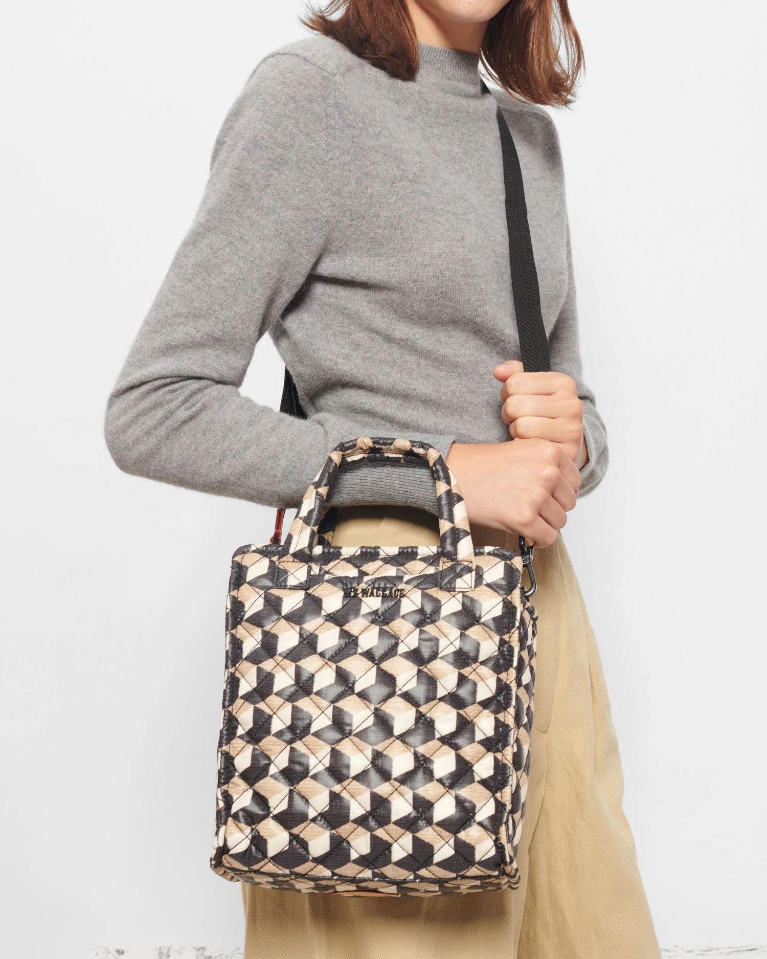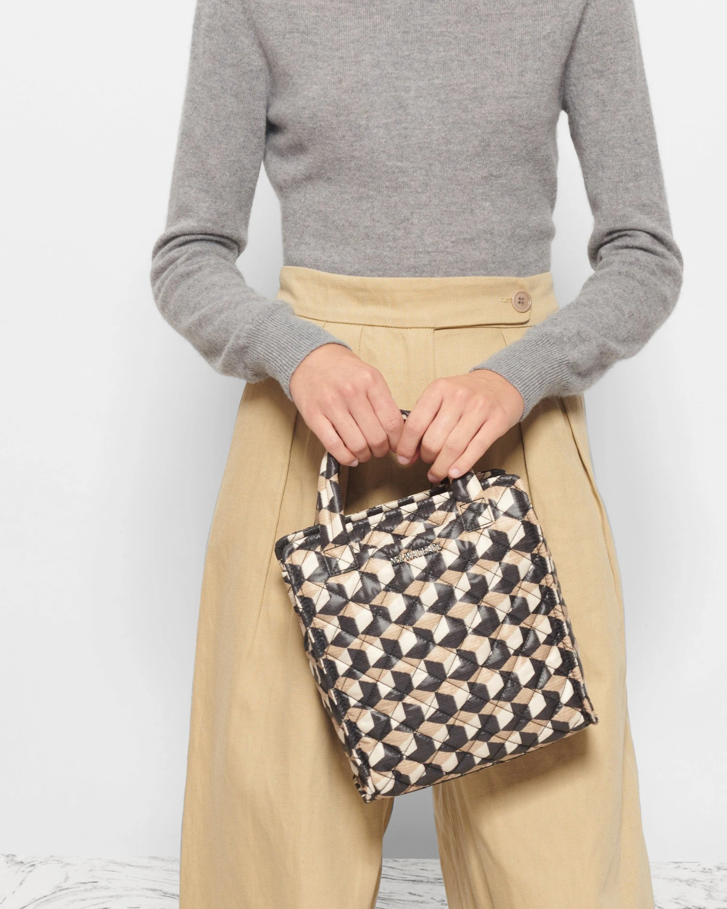 A sized-down version of the Box Tote silhouette, this sleek, structured mini tote has a zippered central compartment with three interior pockets, two exterior zip pockets, and two exterior slip pockets for easy access to your essentials, a detachable, adjustable crossbody strap and a 100% recycled nylon fabrication.