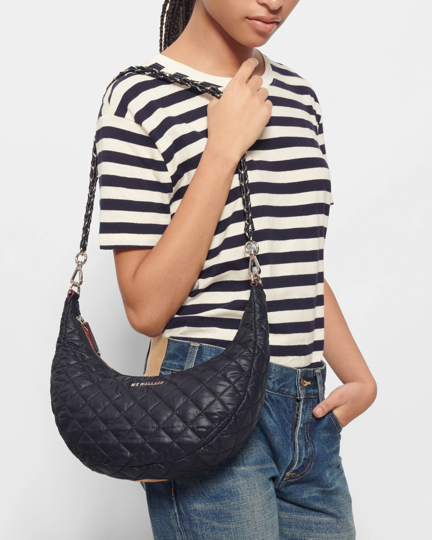 Moon eyed. The REC Oxford Nylon Crosby Luna has a zip top closure and three detachable straps to customize your look.