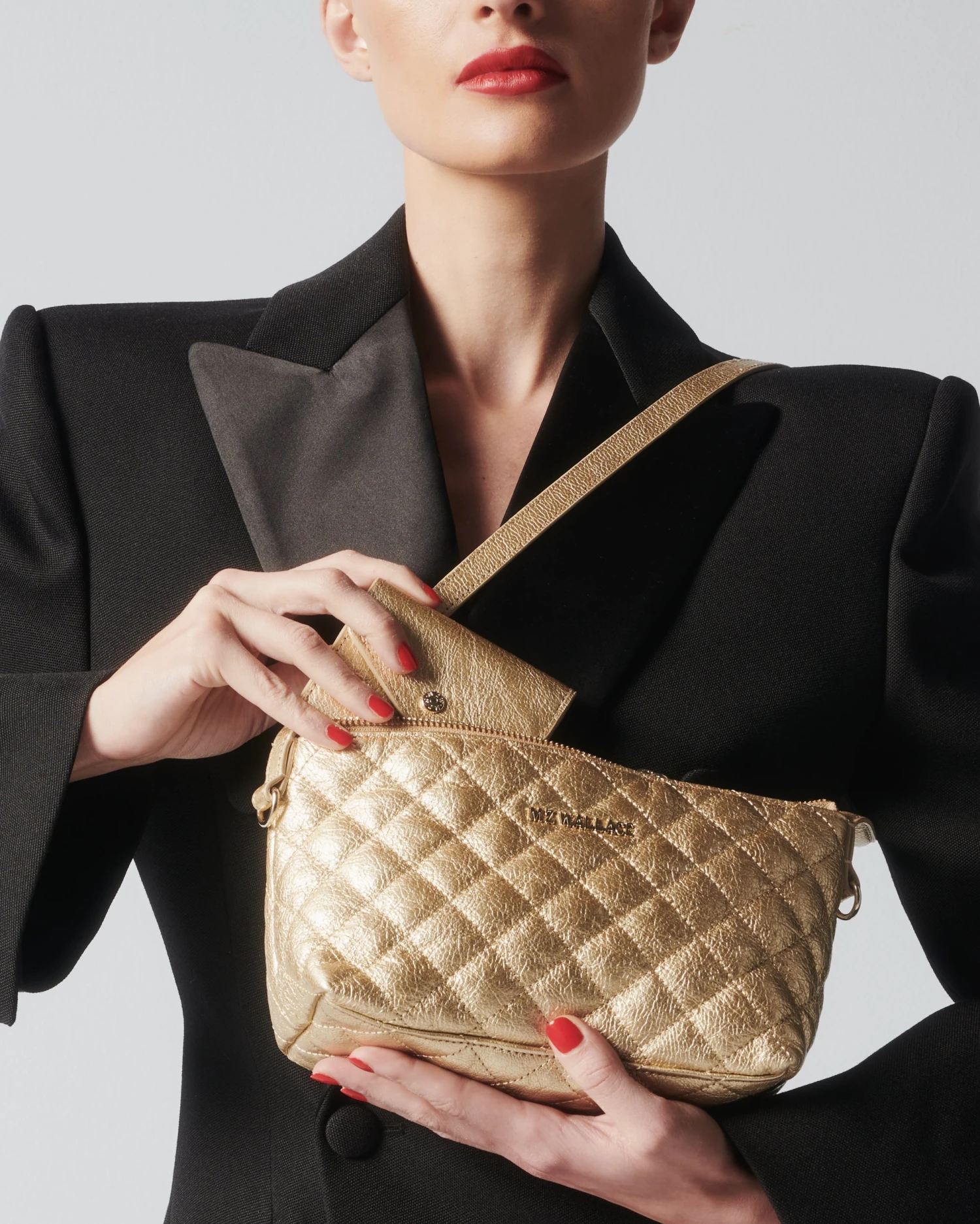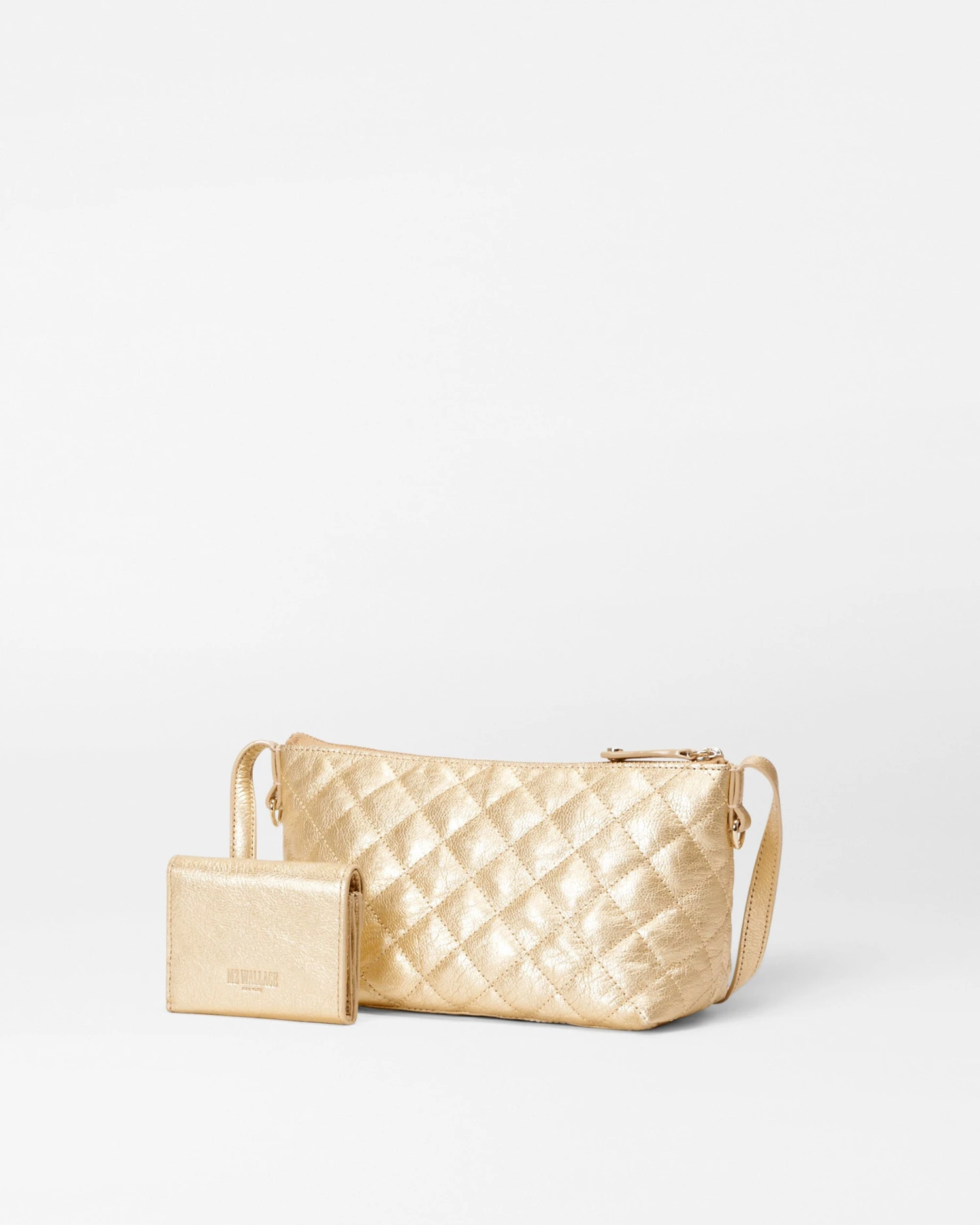 Our new Mini Buckle Shoulder comes with our fan-favorite Mini Katherine Wallet in matching gold Italian leather.